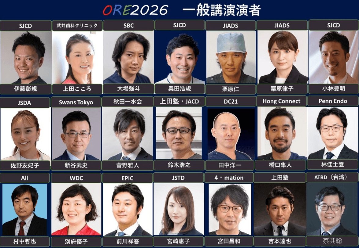 そしてこの度、青井良太 先生が大会長務め、第3回ORE東京大会長 でもあった菅井敏郎先生が副大会長として その当時と同じ東京医科歯科大学(現東京科学 大学)にて“ORE 2026 東京”の開催が決定 いたしました。また、特別講演には東京科学大学、口腔再生再建学分野・口腔インプラント科の丸川恵理子教授、神奈川歯科大学、病理・組織形態学講座環境病理学分野の槻木恵一教授、K‘sseminar主幹の井上和先生、そして海外からは台湾歯列再生研究学会(ATRD)会長の李明科先生に登壇していただく予定となりましたのでここにご案内致します。