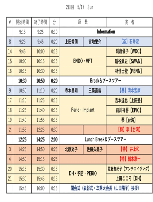 今回学会のテーマを「for Patients」にしたのは私も含めそれぞれの演者が担当する患者に対して診査・診断に時間を費やし患者の背景などを考慮しモチベーションを保たせながら患者に寄り添った治療を行っており、一つ一つの症例に気持ちがこもっている。それぞれが14年の旅を経て「for Patients」-患者のために-何ができるか、何をしてきたか、何を伝えるべきかを聞いていただきたい。無名であった我々が10年以上の時を経て今やそれぞれが講習会で伝える仕事を担っている。それぞれの思いを短い講演時間ではあるが受け取って頂きたいと考える。そして、聞いていただいた皆様の臨床、そして人生の一考となれば幸いである。